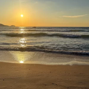 Patong Beach Sunset Reflection — warm sun path on wet sand and gentle surf. Available as Digital Download, Poster, Archival Print, or Framed (Wood/Metal). Museum-grade quality, worldwide delivery.