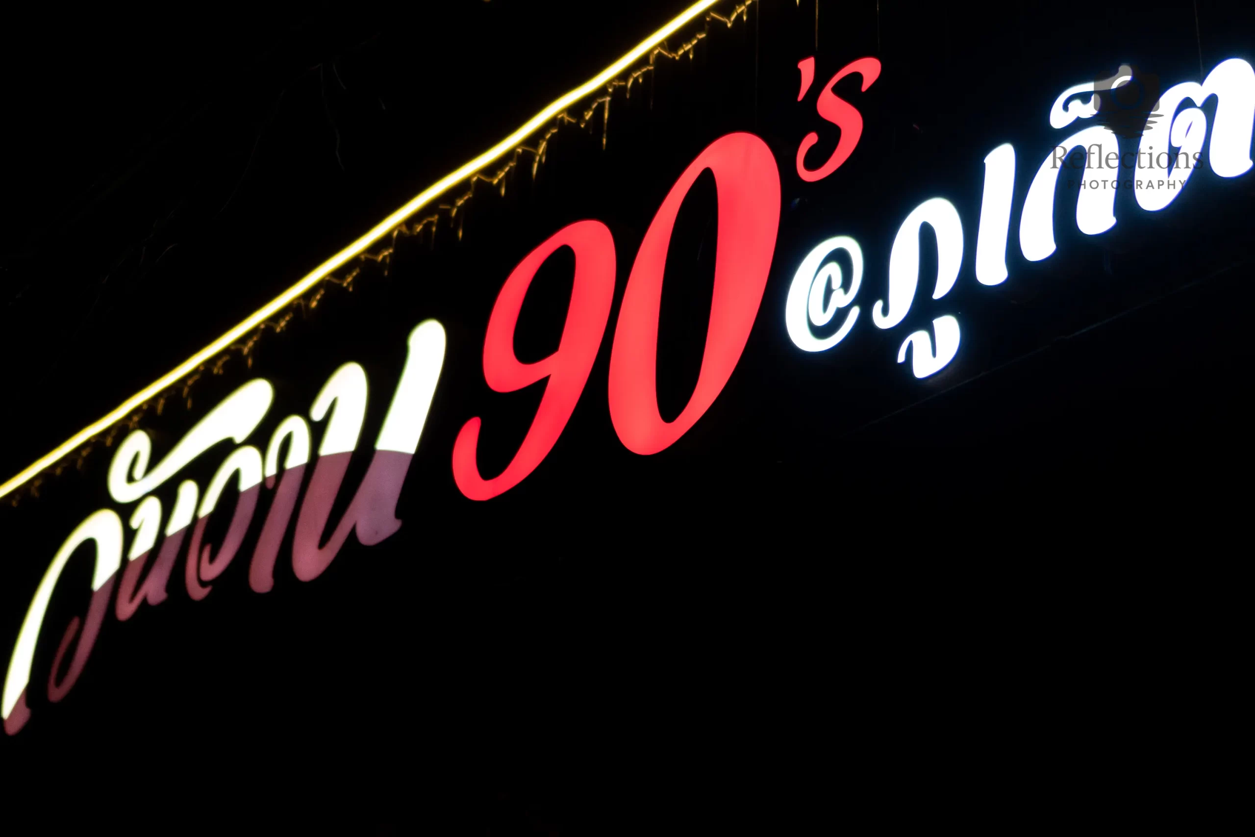 Subject: Thai neon typography with “90’s” signage
